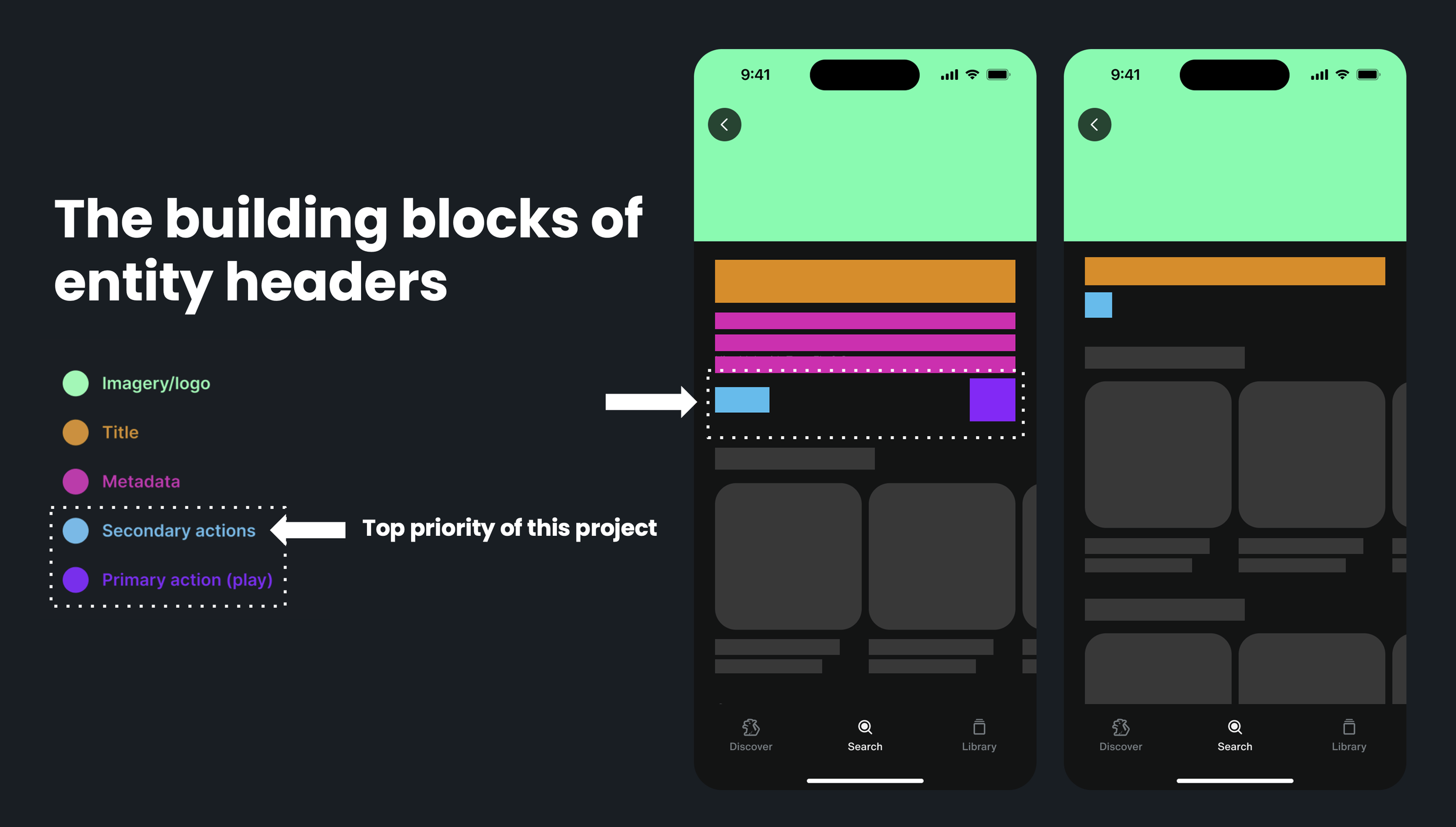 We approached this as a foundational system redesign rather than a visual refresh. Our goal was to create a header that could clearly communicate what an entity is, what you can do with it, and guide you seamlessly into playback. We prioritized strong visual hierarchy, making the primary action unmistakable, while organizing secondary actions in a way that felt both discoverable and scalable. Consistency across entity types was critical—not for uniformity’s sake, but to build familiarity and reduce cognitive load as users moved through the app. At the same time, we designed for flexibility, ensuring the system could adapt to different content types and evolve as new features were introduced. Every decision was pressure-tested against real content, edge cases, and future scenarios to ensure the system would hold up beyond a single release.