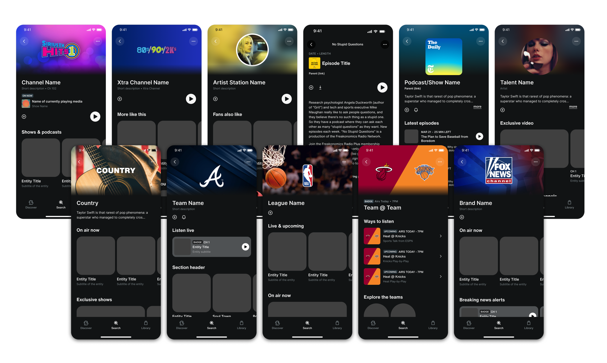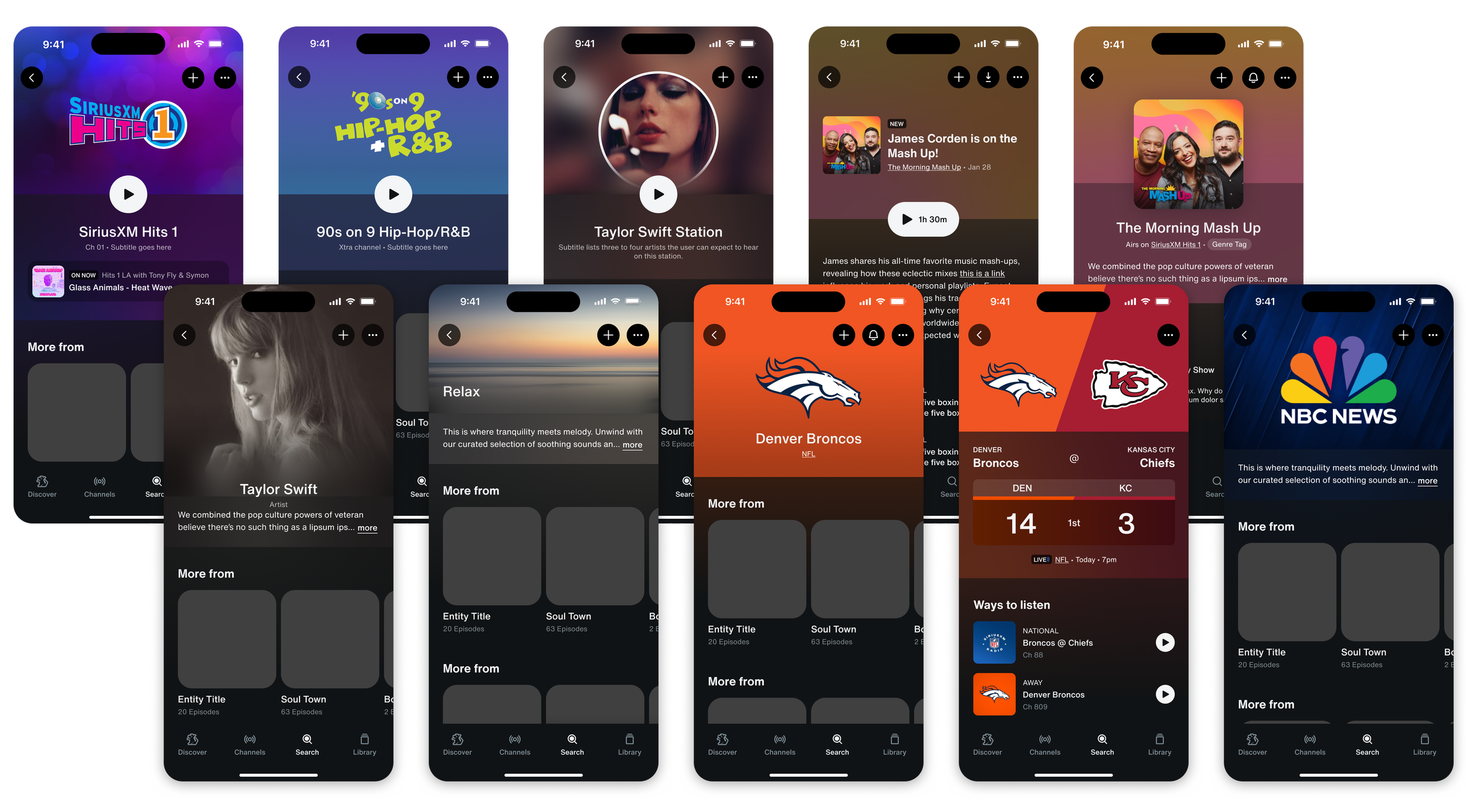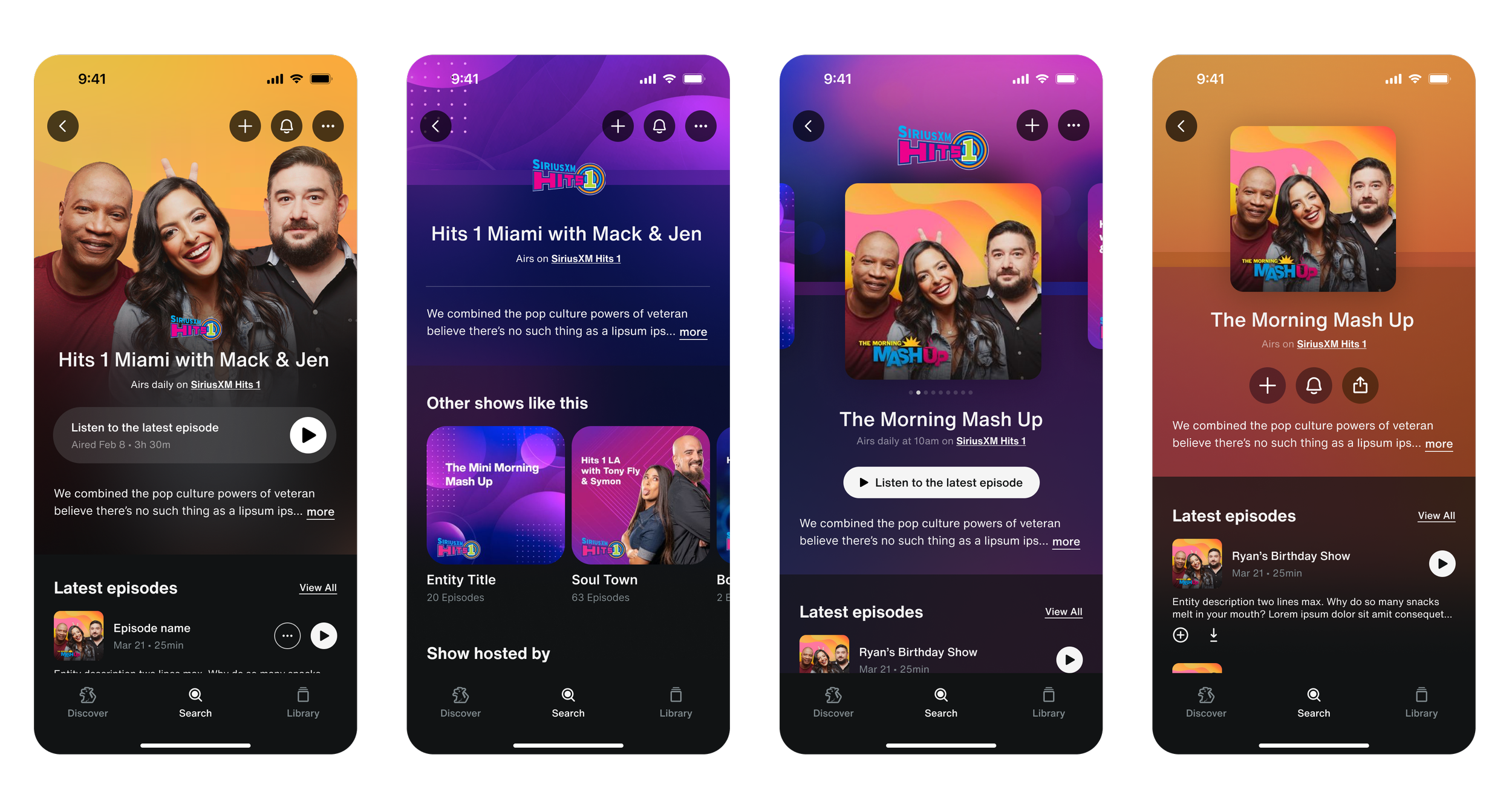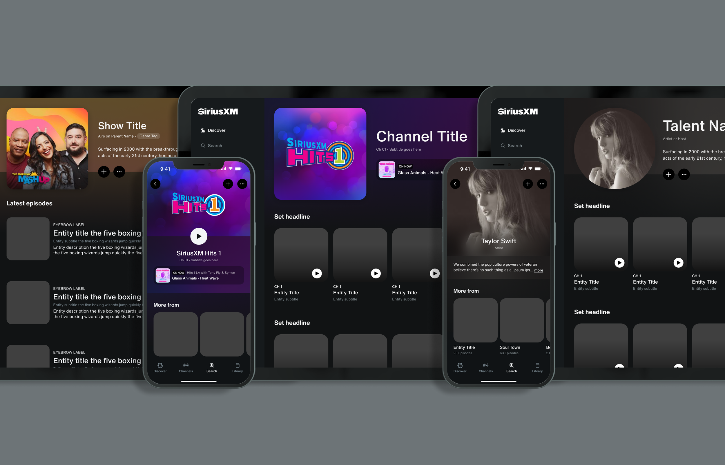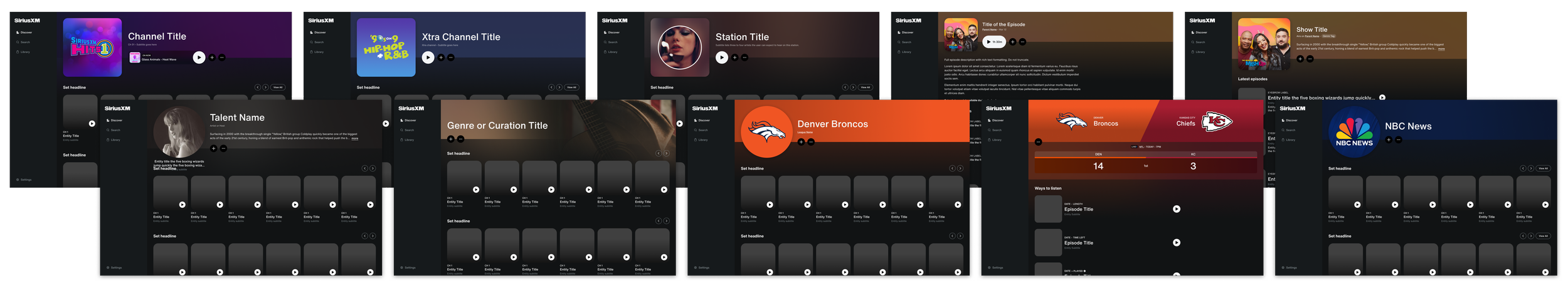 What looks like a simple page redesign was, in reality, a foundational rethink of how millions of users discover and engage with content across SiriusXM. I helped lead the redesign of entity headers across our 12 different entity page types (eg. channels, shows, artists, and episodes) — transforming a cluttered, monotonous system into a scalable, modular framework centered around playback and clarity. The project spanned dozens of design explorations, deep competitive analysis, and alignment across multiple layers of leadership, culminating in a vision we presented up to the VP level. The result was one of the most well-received launches in recent memory, praised internally for both its usability and visual polish, and validated through user testing as more intuitive, engaging, and action-driven.